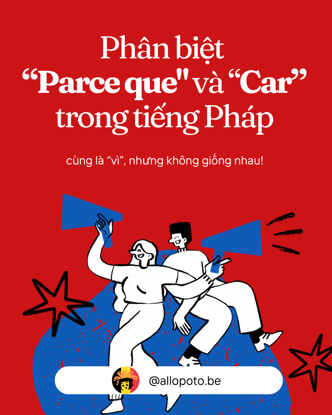 Để Allôpoto mở các nút thắt về cách sự khác nhau của các từ có cùng nghĩa trong tiếng Pháp nha 😉 Và bài đầu tiên là “parce que” và “car” !!!