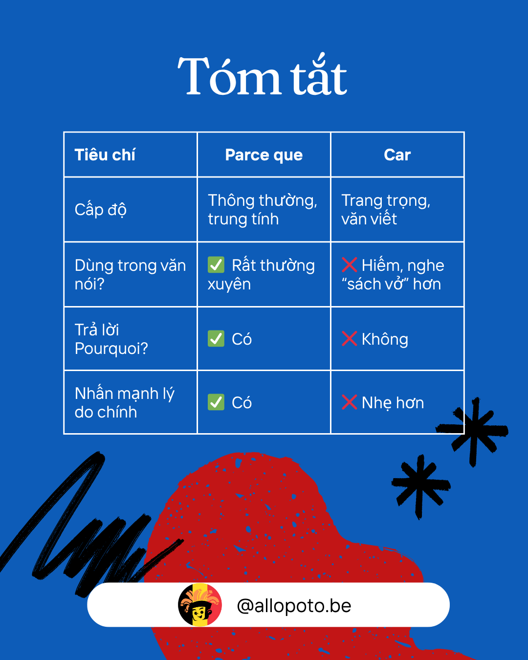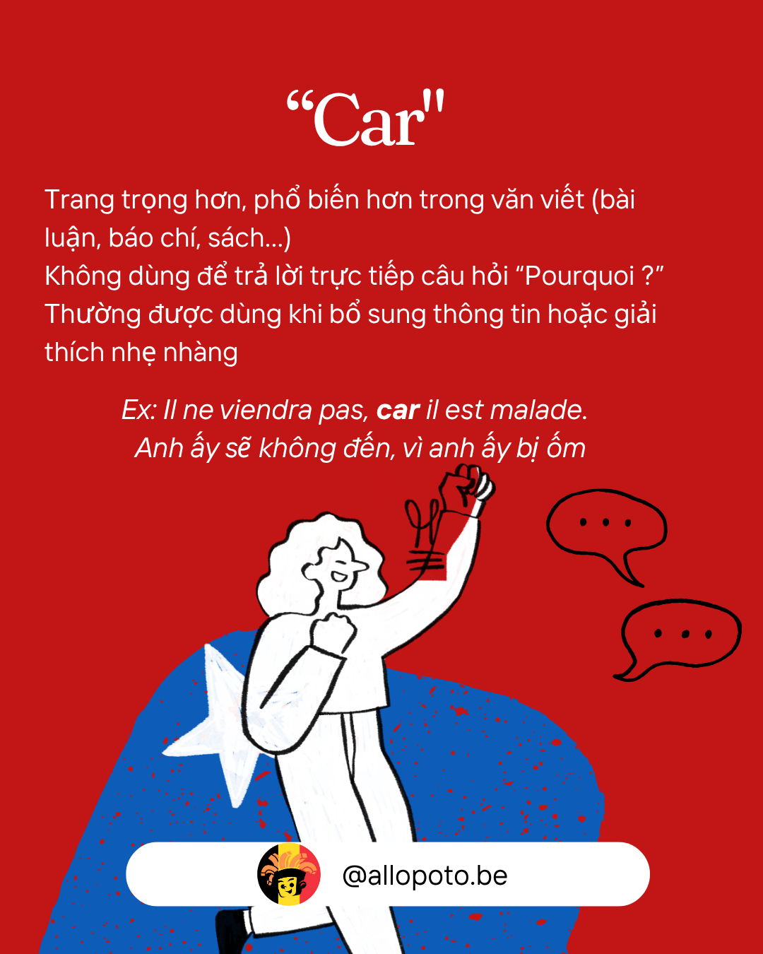 Để Allôpoto mở các nút thắt về cách sự khác nhau của các từ có cùng nghĩa trong tiếng Pháp nha 😉 Và bài đầu tiên là “parce que” và “car” !!!